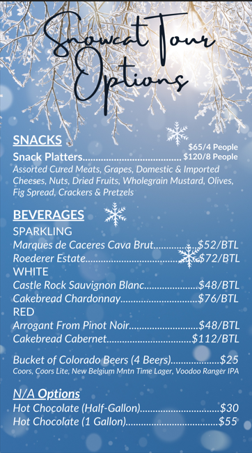 Join us for a scenic view of the resort from the comfort of a snowcat! Our Passenger Bubble Snowcat tours offer comfort, warmth, and breathtaking panoramic views as you’re whisked to the top of the mountain by an experienced mountain guide.